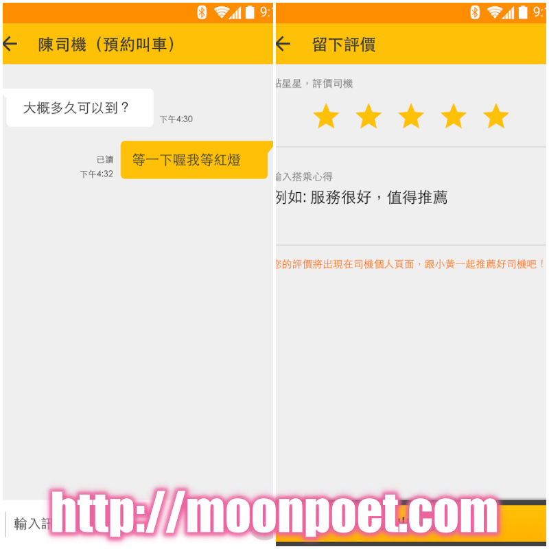 ▼ 叫車時還能與司機用即時通訊確認相關細節,於搭乘後也可針對司機進行評價,當然司機也能評價乘客,是非常公平的叫車平台。